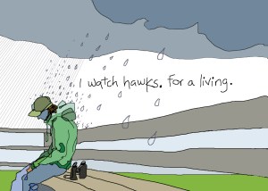 Yesterday the rains came, and as well as washing out the hawkwatch it made for somewhat difficult land birding. Still rain or no rain I did decide to have a damp stroll through the local hotspot Island Cottage Woods. Not a great deal of action but a beautiful spot and even on a somewhat slow day I managed to find a couple of Bay-breasts and a couple of jaunty little Wilson’s Warblers (is there a more frenetic warbler?)